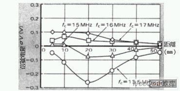 不過上述方式回路的位元錯誤率會變差,而且再送次數則大幅增加,其結果反而會造成非接觸式IC卡通信系統(tǒng)的通信成功率惡化,例如packet長度為256進行2次再送時,為獲得通信錯誤率10-8,回路的位元錯誤率必需低于10-5,此時若以ASK的非同步檢波獲得10-5的位元錯誤率,S/N比大約需要15dB左右,如此才能確保RW的預期目標。實現以上位元錯誤率目標值的關鍵,是如何對策阻抗(impedance)特性變動的技術,具體內容分別是: ‧非接觸式IC卡片特性變動的對策 ‧RW設置環(huán)境的適應性 非接觸式IC卡片具備無形狀上限制等特徵,因此最近幾年甚至出現內建非接觸式IC晶片的手錶與list band等商品,依此觀之未來勢必推廣至移動電話等領域,然而RW的廣泛應用卻造成RW的相容性、如何同時辨識復數非接觸式IC卡片、如何設計復數RW之間不會相互干擾等問題成為重要課題,亦即今后必需克服以下問題: ‧支援多樣化媒體與周圍環(huán)境的適應性 ‧復數非接觸式IC卡片的辨識能力 ‧抑制復數RW之間相互干擾 對策技術 圖3是媒體特性對非接觸式IC卡片通人系統(tǒng)的影響實例,如圖所示它是非接觸式IC卡片-RW之間的距離,與RW-非接觸式IC卡片之間的信號強度對復數個卡片共振頻率fc變數的互動關系,由圖可知fc相異時通信特性相對變大,尤其是fc=15MHz的特性,非接觸式IC卡片-RW之間的距離d=10mm時,信號強度幾乎接近zero cross。