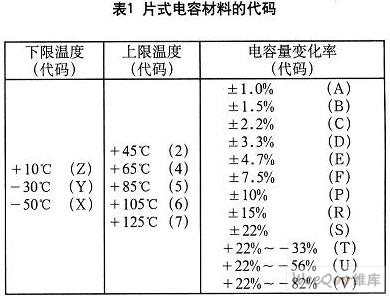 其余材料是按其工作溫度的范圍和電容量的變化率來命名的。詳見表1。